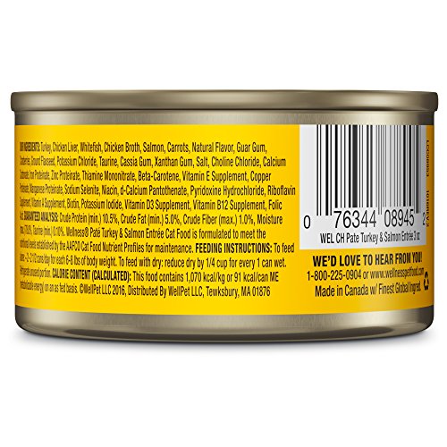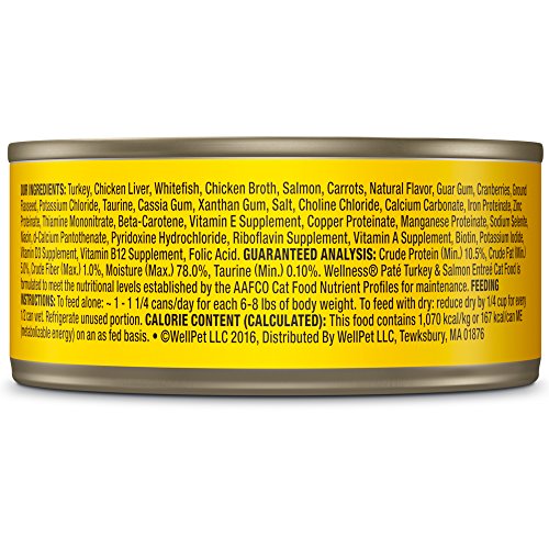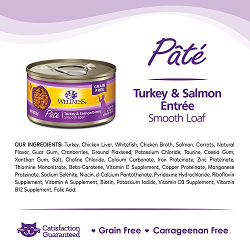 Wellness Natural Grain Free Wet Canned Cat Food, Turkey & Salmon Pate, 3-Ounce Can (Pack of 24)