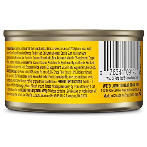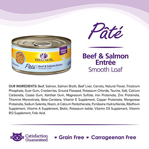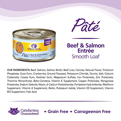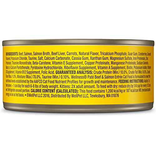 Wellness Natural Grain Free Wet Canned Cat Food, Beef & Salmon Pate, 5.5-Ounce Can (Pack of 24)