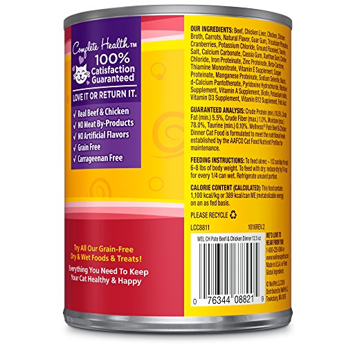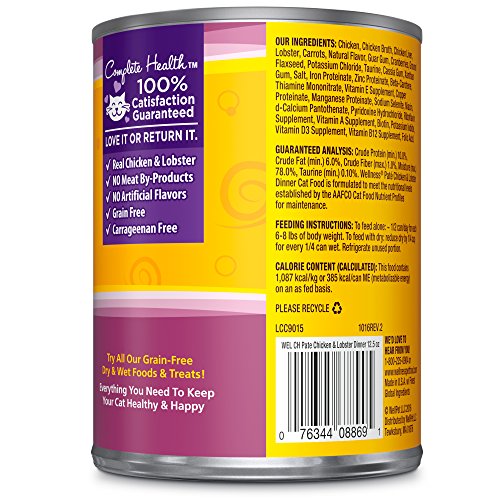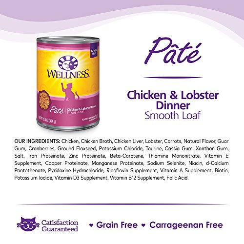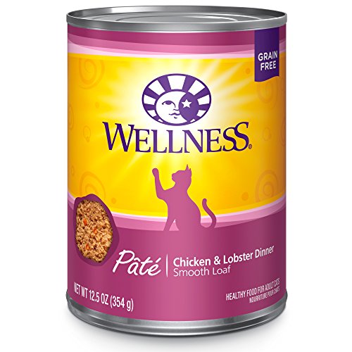 Wellness Natural Grain Free Wet Canned Cat Food, Chicken & Lobster Pate, 12.5-Ounce Can (Pack of 12)