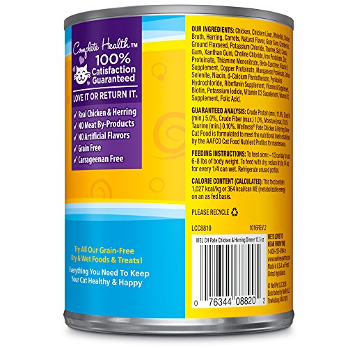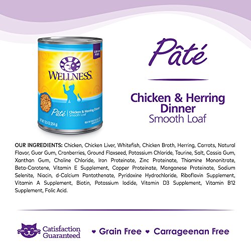 Wellness Natural Grain Free Wet Canned Cat Food, Chicken & Herring Pate, 12.5-Ounce Can - Pack of 12