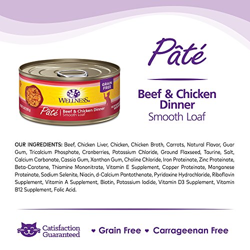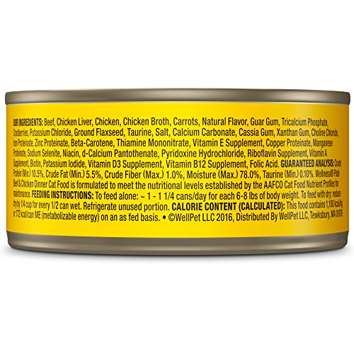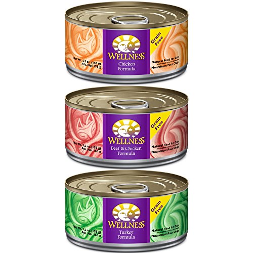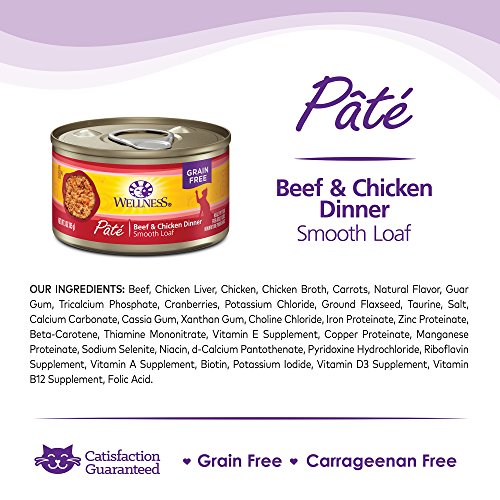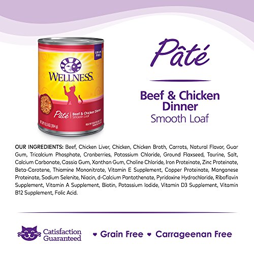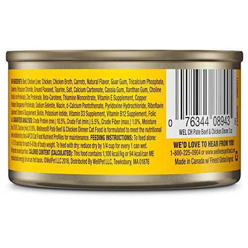 Wellness Natural Grain Free Wet Canned Cat Food, Beef & Chicken Pate, 3-Ounce Can (Pack of 24)