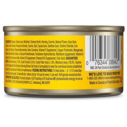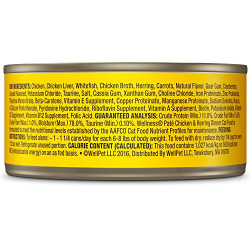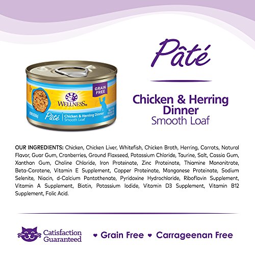 Wellness Natural Grain Free Wet Canned Cat Food, Chicken & Herring Pate, 3-Ounce Can (Pack of 24)