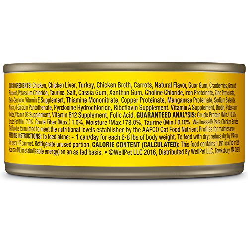 Wellness Natural Grain Free Wet Canned Cat Food, Chicken Pate, 5.5-Ounce Can (Pack of 24)