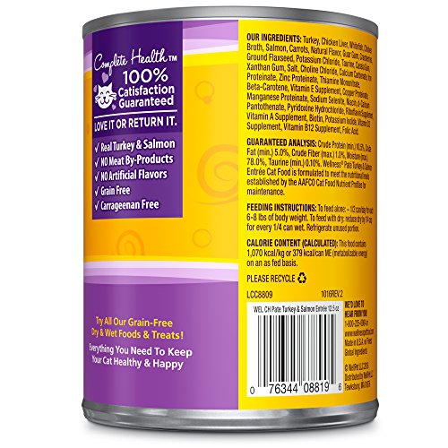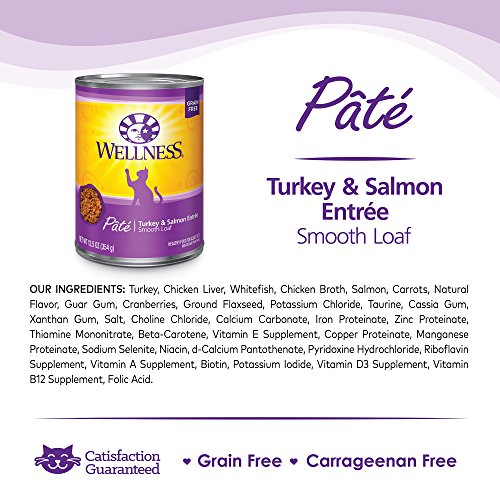 Wellness Natural Grain Free Wet Canned Cat Food, Turkey & Salmon Pate, 12.5-Ounce Can (Pack of 12)
