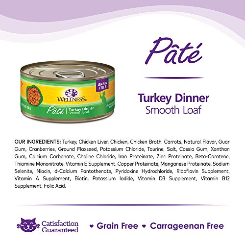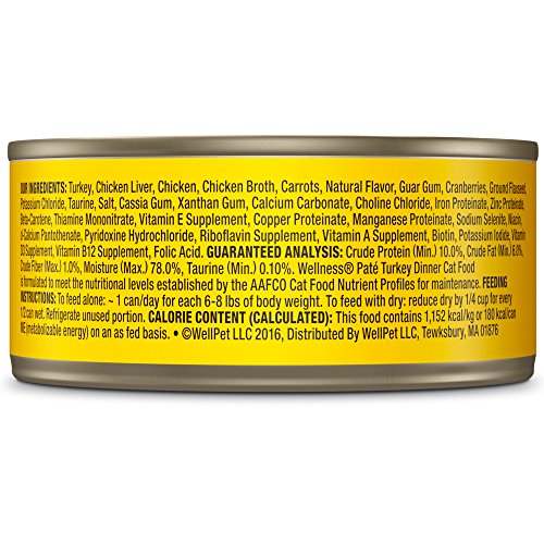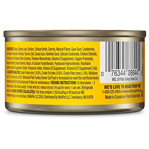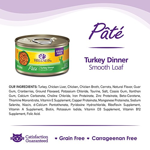 Wellness Natural Grain Free Wet Canned Cat Food, Turkey Pate, 3-Ounce Can (Pack of 24)