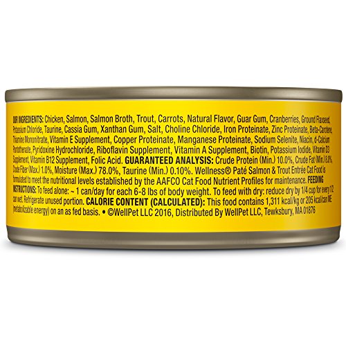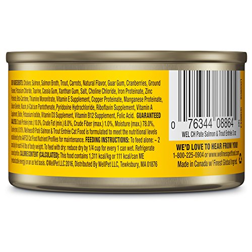 Wellness Natural Grain Free Wet Canned Cat Food, Salmon & Trout, 3-Ounce Can (Pack of 24)