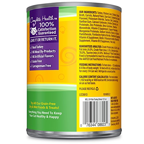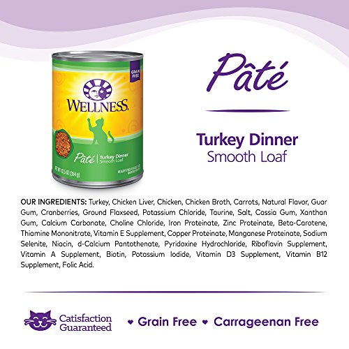 Wellness Natural Grain-Free Wet Canned Cat Food, Turkey Pate, 12.5-Ounce Can (Pack of 12)