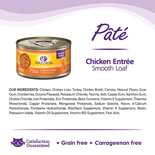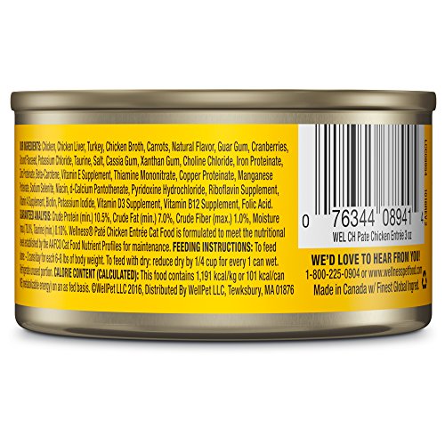 Wellness Natural Grain Free Wet Canned Cat Food, Chicken Pate, 3-Ounce Can (Pack of 24)