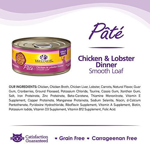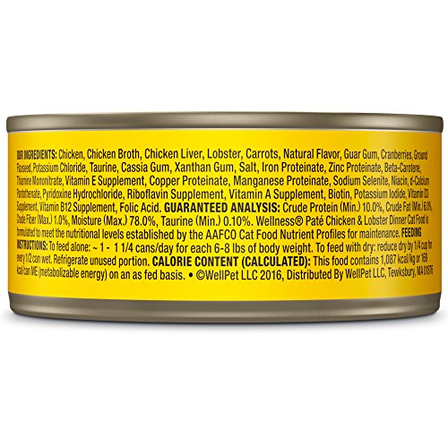 Wellness Natural Grain Free Wet Canned Cat Food, Chicken & Lobster Pate, 3-Ounce Can (Pack of 24)