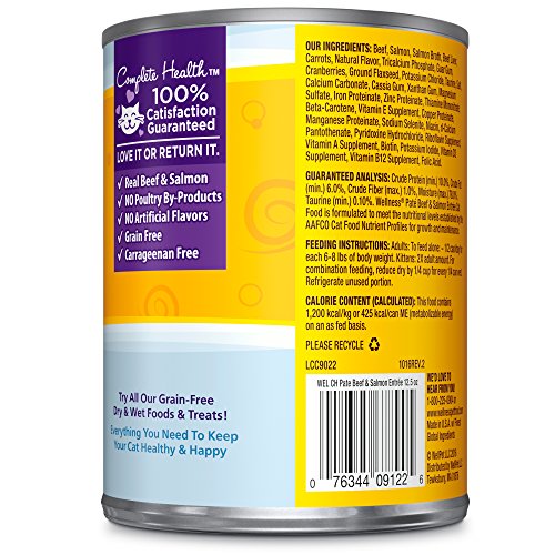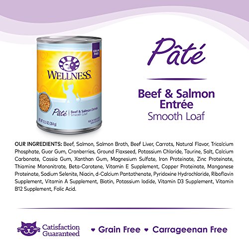 Wellness Natural Grain Free Wet Canned Cat Food, Beef & Salmon Pate, 12.5-Ounce Can (Pack of 12)