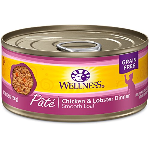 Wellness Natural Grain Free Wet Canned Cat Food, Chicken & Lobster Pate, 5.5-Ounce Can (Pack of 24)