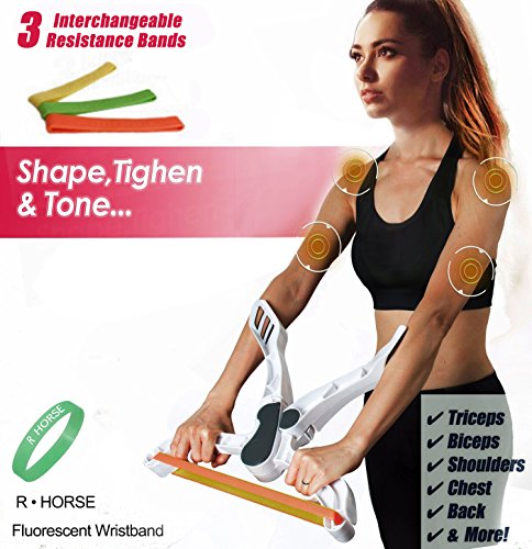 *** Please purchase from our store R ? HORSE ONLY, other sellers are all without authorization. R ? HORSE would not responsible for any other counterfeit sources. Get the firm, fabulous arms you've always wanted in just minutes a day with Arm Upper Body Workout Machine as seen on TV. *** This is the breakthrough fitness sensation that helps you get rid of that flabby problem area under your arms. *** The secret is the unique dynamic resistance movement that works your biceps, triceps, shoulders and even your chest all at one time, for amazing results you won't believe. *** You'll instantly feel your muscles toning and tightening as you burn calories without joint strain. Perfect for all fitness levels. INCLUDES: 1 arm machine 3 resistance bands 1 fluorescent wristband 1 English user instruction IMMEDIATE, FAST SHIPPING: As soon as you place your order, we jump into action to get it out immediately! 0