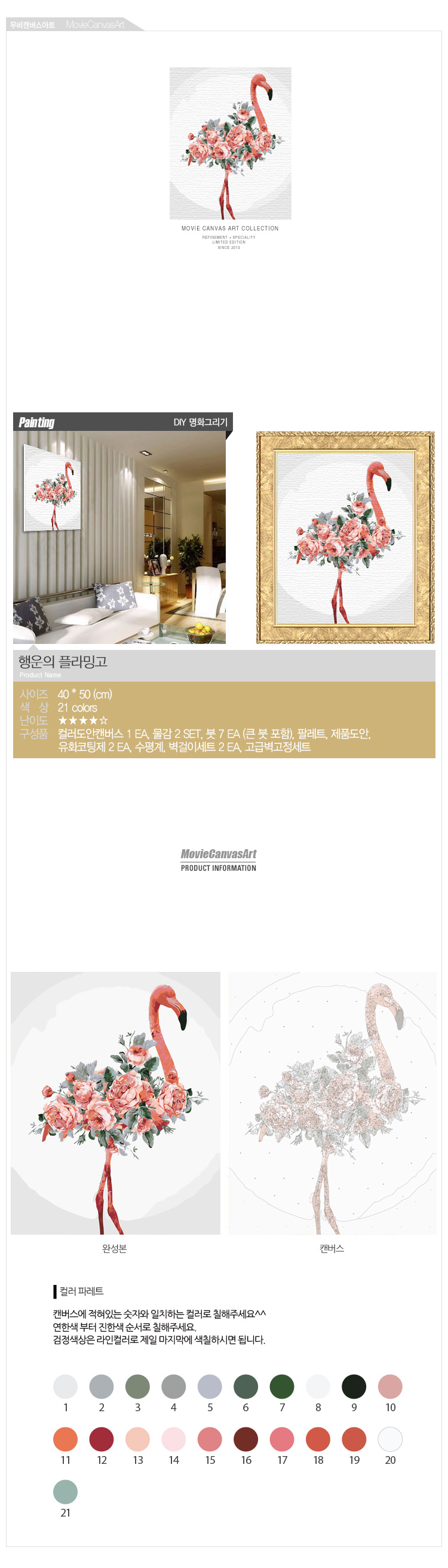 (물감2배, 컬러캔버스, 플라워, 플라밍고, 새, 홍학, 핑크, 동물, 꽃)