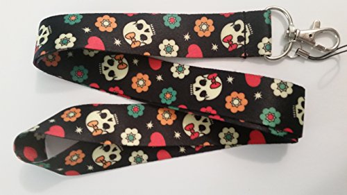Skulls and Flowers Print Lanyard Key Chain Neck Strap ID Badge Holder