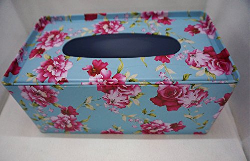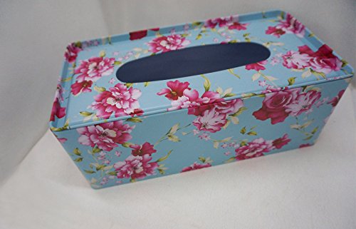 Fancy Tissue Box Cover tin Sky Blue Color with beautiful Floral design Shabby Chic
