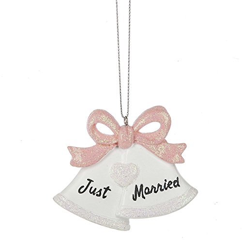 Just Married Wedding Bells Glitter 3 x 2.5 Inch Resin Christmas Ornament Figurine