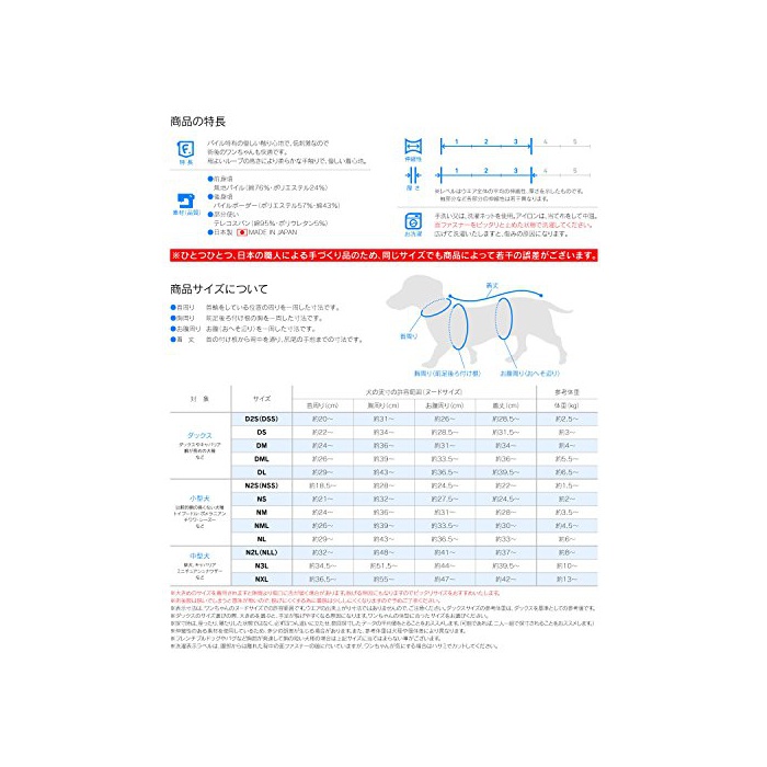 포인트4:「강아지의 체형 에 맞게 했 풍부한 사이즈 전개.」술다음의 몸의 부담을 줄이는 모아 두고, 쓸데없는 사이즈 조정 기구를 붙이지 않고 최대한 딱 맞는 사이즈를 입게 해 대라고 하는 생각부터 풍부한 17(닥스5사이즈,소형견5사이즈,중형견3사이즈,대형견4사이즈)사이즈를 준비 했습니다.