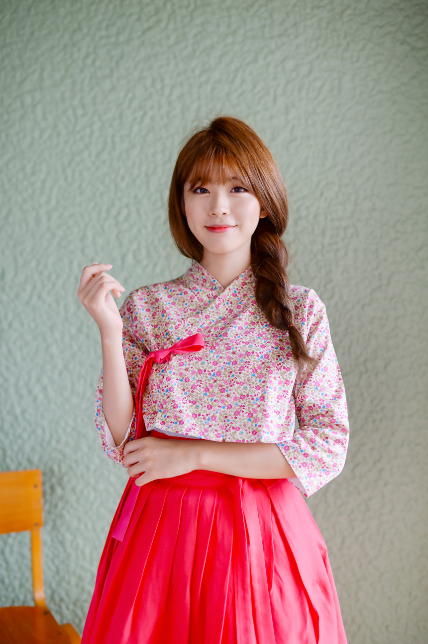 모델은 체리레드치마와 코디하였습니다