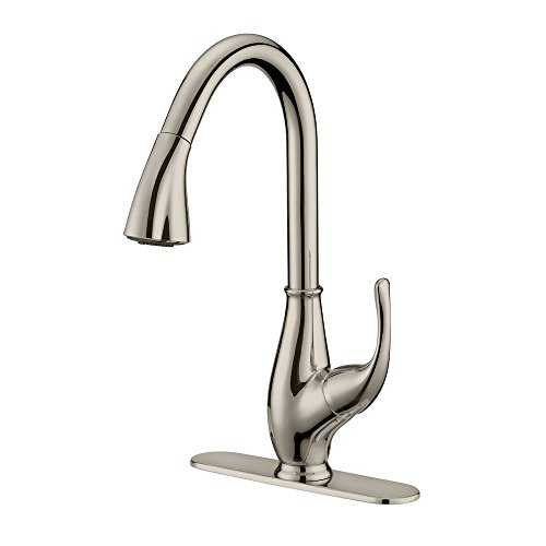 Designers Impressions 611663 Satin Nickel Single Handle Kitchen Faucet with Pull Out Sprayer - Includes Optional Deck Plate