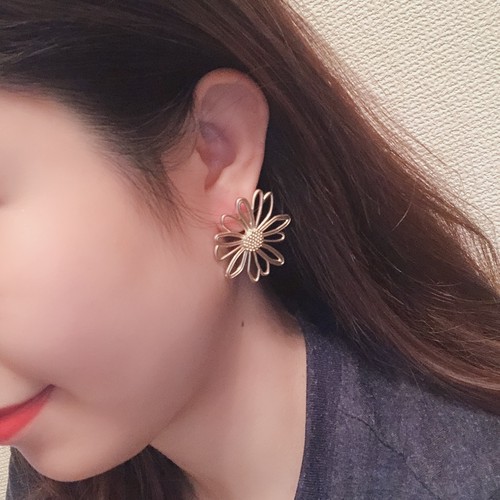 大人可愛いフラワーピアスです。