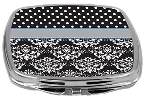 Rikki Knight Damask Dots Design Compact Mirror, Grey/Blue/Black, 17 Ounce