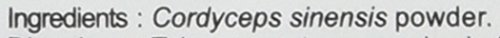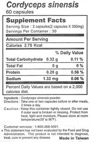 -. Title : Cordyceps Sinensis Capsules - SGS Certified, cGMP Certified, Guaranteed Authentic, 99.6% rDNA Proven Genuine - 60 capsules per bottle, 350mg per capsule - Made in Taiwan