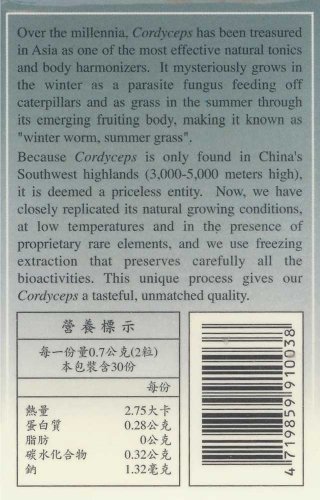 -. Feature : Cordyceps sinensis contains many active ingredients, including ribonucleosides, mannitol, sterols, organic acids, polysaccharides, proteins, polyamines, amino acids, dismutase, dipeptides, vitamins, and a variety of trace elements. Over the millennia, Cordyceps sinensis has been treasured throughout Asia as one of the most effective natural tonics to strengthen vitality and promote longevity. / Proven through molecular identification,our strain of Cordyceps (Hirstuella) sinensis has a 99.6% similarity in rDNA sequence compared to the wild-type strain grown in Tibet, listed in NCBI's global genomic database GenBank. Our offerings are 100% pure, 100% mushroom. Our liquid extracts typically contain over 25 g/L of polysaccharides. Additionally, our products are certified by SGS and our facilities are cGMP certified. / Most of the food we consume today is lacking a number of important nutrients. This is due to the way today's food is planted, harvested and processed. CGB addresses this nutritional deficit by replenishing the body with 76 specific nutrients, vital to all organic life. All products are grown or supplemented with these 76 minerals and nutrients.Combined with advances in nanotechnology, CGB is able to cultivate herbs and medicinal mushrooms that are pure, clean and safe. / You Deserve Safety & Quality: Safe and all natural products. No chemicals, preservatives or additives in any offering! CGB's State-of-the-art Research Center in the USA is equipped with green houses and the latest facilities for micro-organism research. CGB's processes and facilities for mushroom cultivation are cGMP certified and even exceed those standards. Their own standards are even more rigorous. Made in Taiwan, a country with strict supplement laws. / MADE IN TAIWAN (NOT CHINA) Repeatedly named a top 3 most trusted and recognized brand by Business Today Taiwan, Chang Gung Biotechnology Corp's has over 90 health centers throughout Asia and is a pioneer in nano-science, organic farming, environmental cleanliness and RO water purification. State of the art research centers in the US, Canada, Australia, Brazil and Eastern Europe ensure that the newest technologies and discoveries are adapted to improve our health, environment and Mother Earth.