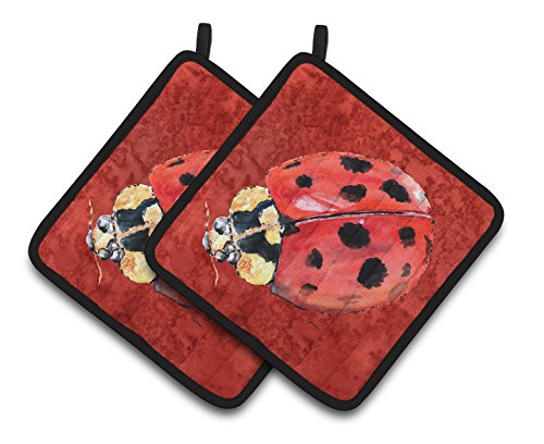 Caroline's Treasures Lady bug on Deep Red Pair of Pot Holders 8870PTHD, 7.5HX7.5W, Multicolor