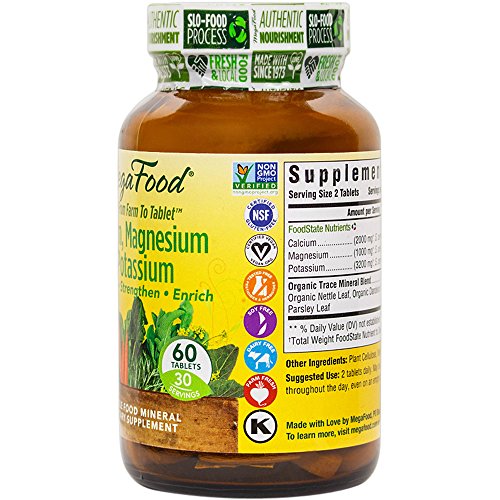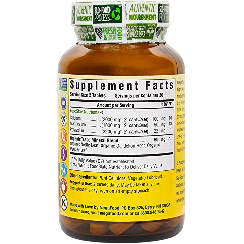 Studio : Megafood Publisher : Megafood Binding : Health and Beauty Product Description Calcium, Magnesium and Potassium is a balanced 100% whole food multi-mineral formula designed to maintain already healthy blood pressure levels, cardiovascular health and to promote the health of bones and the muscular skeletal system. These three minerals are delivered within a FoodState Concentrate of Saccharomyces cerevisiae which provides all of the synergistic enzymes, cofactors and phytonutrients, necessary for proper utilization and retention by your body. The superior bioavailability of whole food nutrients results in a more efficacious formula than those that contain higher amounts of simply isolated mineral forms. This multi-mineral is the perfect product to complement any MegaFood One Daily Multi-Vitamin and Mineral formula. 0