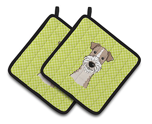 Caroline's Treasures Checkerboard Lime green Wire Haired Fox Terrier Pair of Pot Holders BB1309PTHD, 7.5HX7.5W, Multicolor