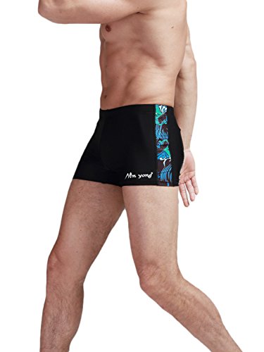 Neleus Men's Black Square Leg Swimwear,2# Black 1,US XS,Asia M