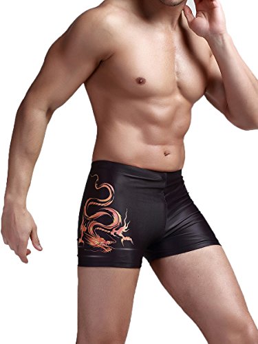Neleus Men's Compression Square Leg Swimsuit, Dragon (Black),US L,Asia 3XL