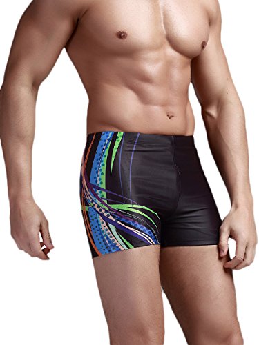 Neleus Men's Black Square Leg Swimwear,2# Black 2,US M,Asia XL