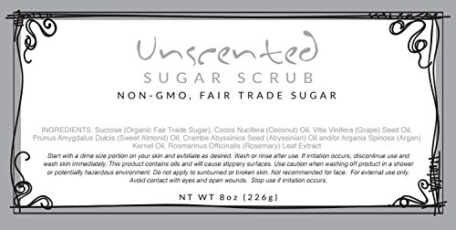 Unscented Sugar Scrub - Non-GMO, Organic, Fair Trade Sugar with Coconut Oil. Made in USA (10 oz)