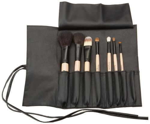 Gorgeous Cosmetics Perfect 7 Brush Collection, Makeup Brush Set, 7 Brushes, With Leather Look Black Wrap, Natural and Synthetic Hair