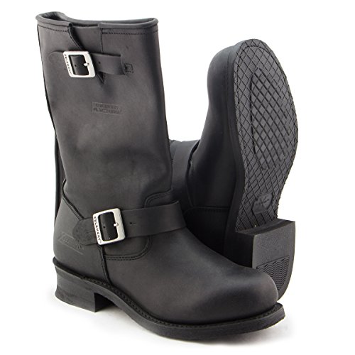Top quality full grain leather is used to make the most technologically advanced motorcycle engineer biker boots ever, the Xelement 1440 Classic Mens Black Engineer Boots. Great classic look for a 13 inch engineer biker boot (13 inches from heel to top, full 11 inch leather shaft). Features Goodyear welt construction, which stitches the leather to the non-marking rubber outsoles and gives you a secure, flexible fit thats just right. This is the most technologically advanced mens biker boot built for long-term durability, comfort, and protection. Sold exclusively at LeatherUp, the most popular online motorcycle store. 0