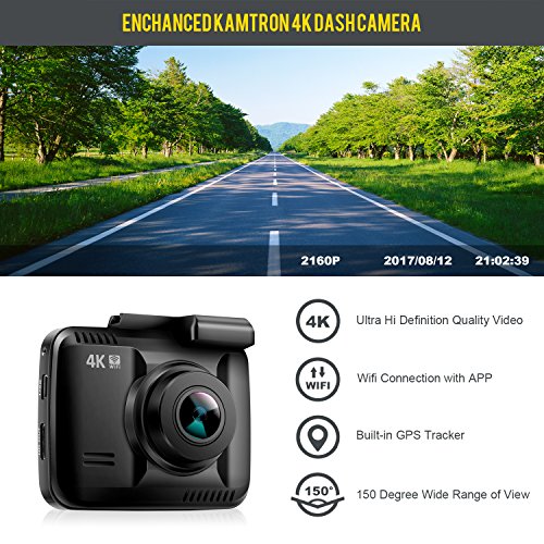KAMTRON G-4 4K Ultra HD Car Dash Cam Recorder, 150° Wide Angle Lens Dashboard Camera With Wi-Fi and APP, G-Sensor, GPS, WDR, Loop Recording