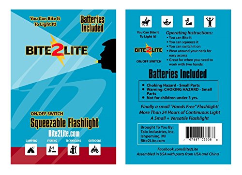 Bite2Lite LED Flashlight. Small, Durable, And Easy To Use With Breakaway Lanyard. Batteries Included. Bite, Squeeze, Or Use ON/OFF Switch (Black)