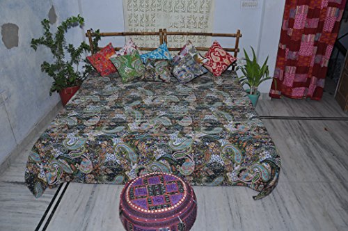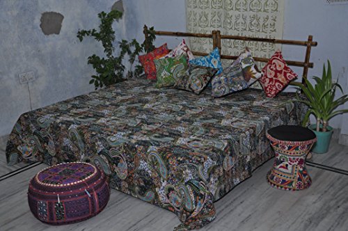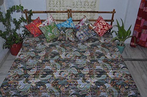 Product Description Summer bedding. Tropical cotton comforter. Paisley design will add touch of class to your bedroom. Handmade exclusively by Indian artisans for your enjoyment. kantha quilts are light weight. Perfect to drape on your bed in warm months.black bedspread perfect for your guest room. * Queen/full: 90x108 inches. 220x270cm * Cotton * Made in India * Dry clean or machine wash in gentle cycle in cold water separately. 0