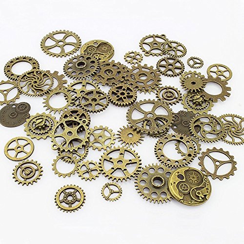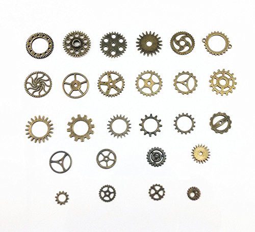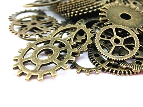 AKOAK 100 Gram Mix Style Antique Steampunk Gears Charms Clock Watch Wheel Gear Pendant Charms for DIY Craft (Antique Bronze)