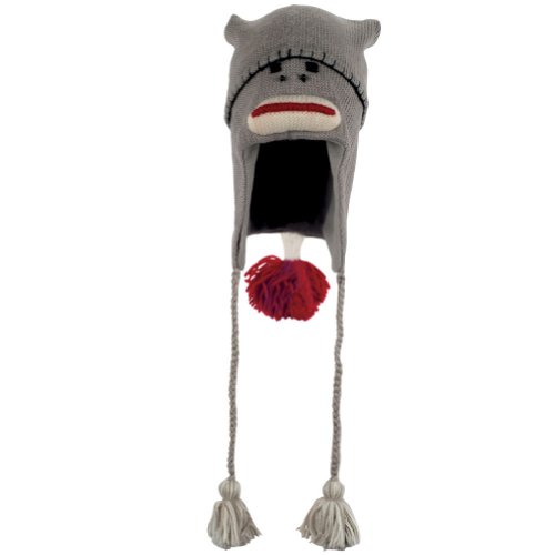 -. Title : Animal World - Sock Monkey Long Cap Peruvian Knit Hat Grey