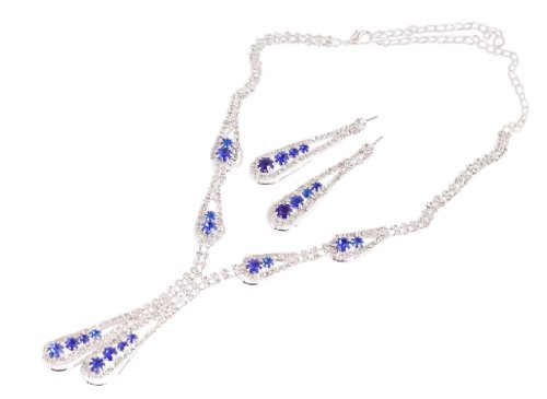Stunning drop necklace and earring set. Clear and Saphire Blue Crystals
