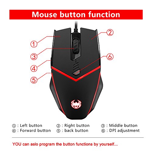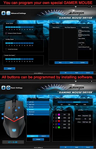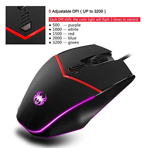-. Title : Gaming Mouse Wired [ Programmable ][ Breathing Light ] [ 3200 DPI ] [ Weight Tuning Set ], ZELOTES PC,Computer Gamer Mice, 6 Buttons for Both Hands- Black.
