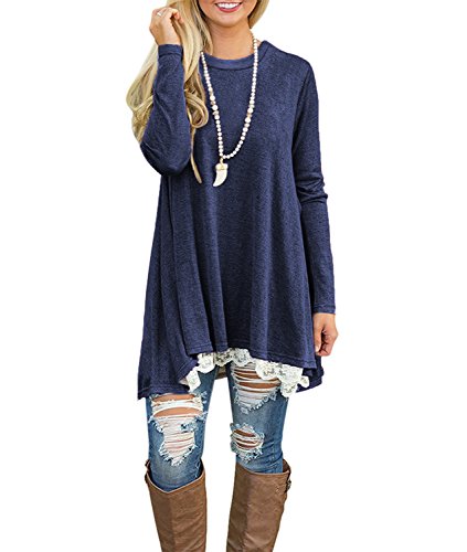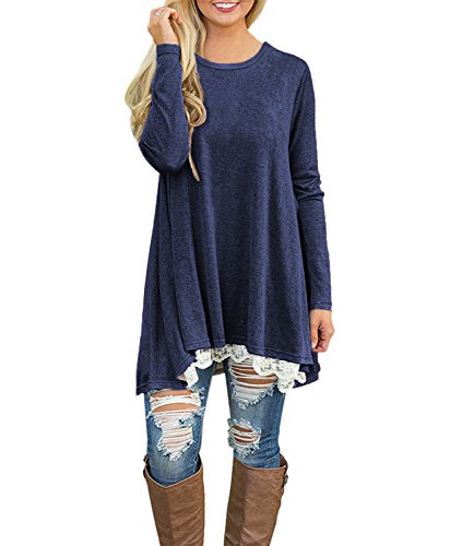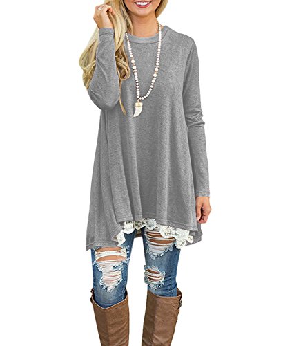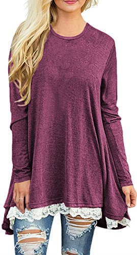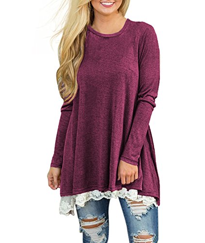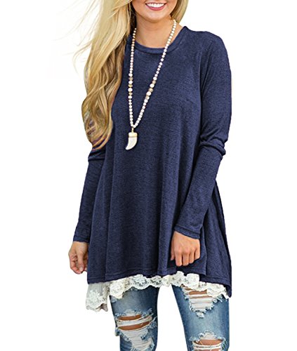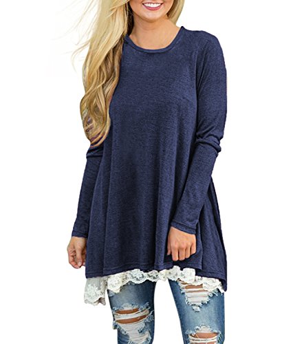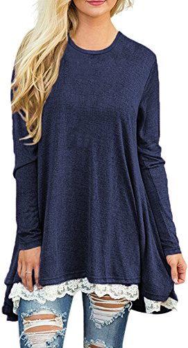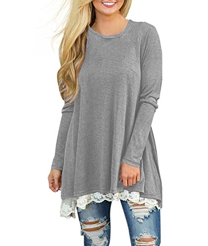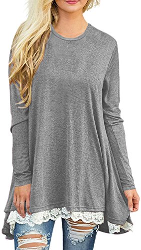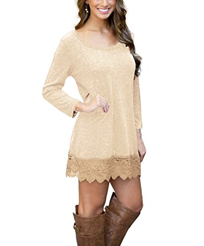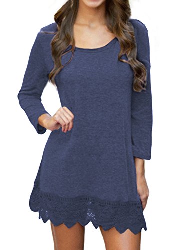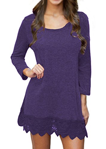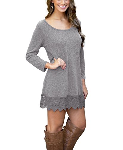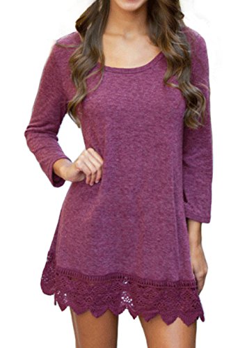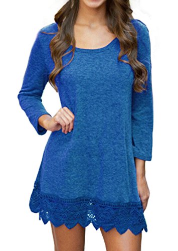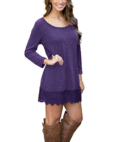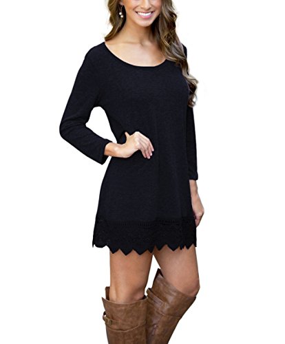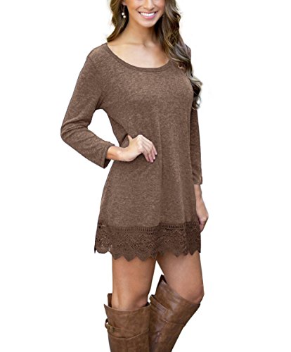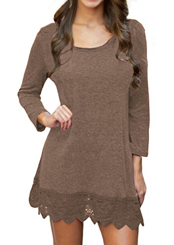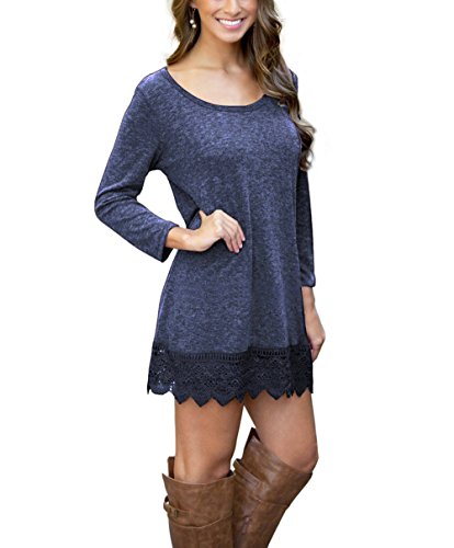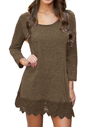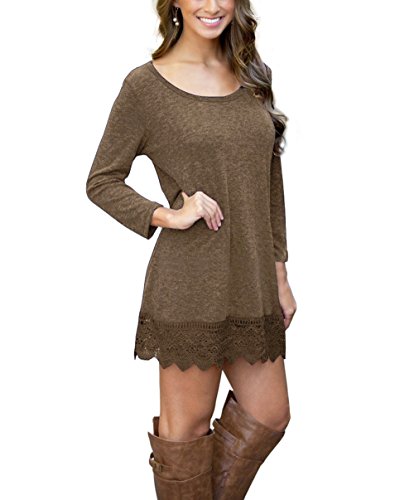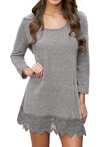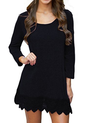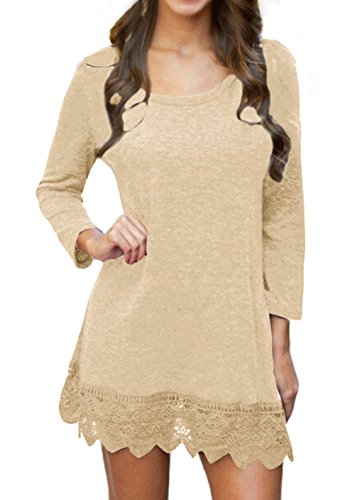 | POZON Women's Long Sleeve A-line Lace Stitching Trim Casual Dress |