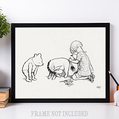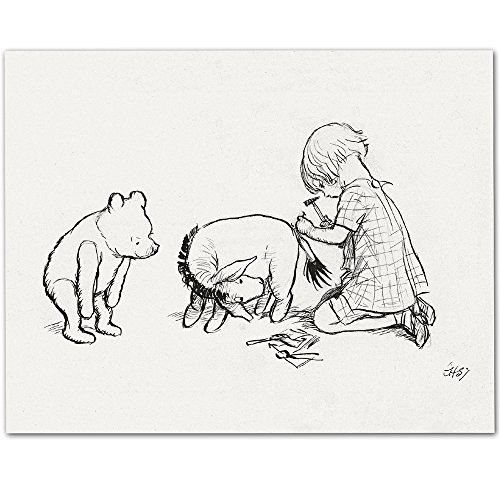 Fixing Eeyore's Tail - Winnie the Pooh 11x14 Unframed Nursery Art Print