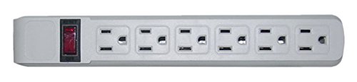 C&E Surge Protector, Flat Rotating Plug, 6 Outlet, Horizontal Outlets, Plastic, Power Cord, 4 Feet - Gray, CNE470882