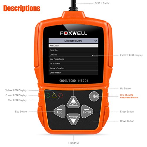 OBD II Auto Code Scanner Automotive Diagnostic Scan Tool Check Car Engine Light Fault Codes Readers OBDII OBD2 Diagnostics Scanners Foxwell NT201 Orange