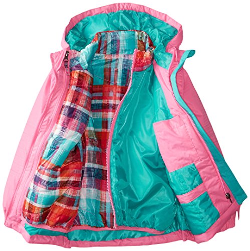 Plaid jacket features chevron quilting, zip front, and standing collar