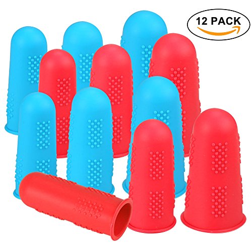 eMigoo Hot Glue Gun Finger Caps 12 Pieces Silicone Finger Protectors for Hot Glue Wax Rosin Resin Honey Adhesives Scrapbooking Sewing in 3 Sizes (Red and Blue)