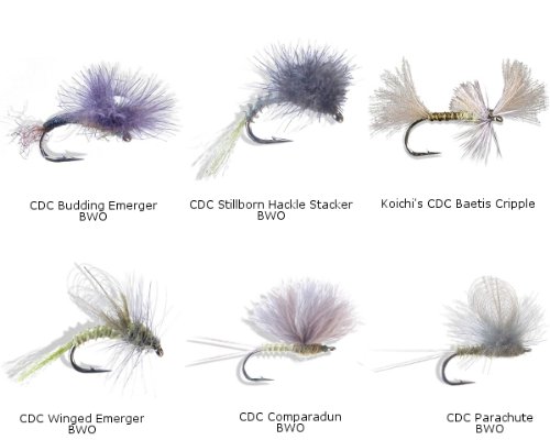 -. Title : Mayfly - BWO Cdc Dry / Emerger / Cripple Flies - 12 Piece Fly Assortment Kit